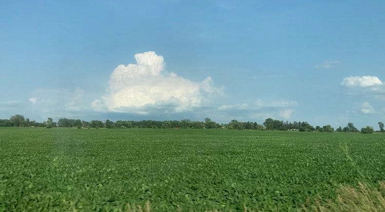 The backroads took us past fields, farms, and more fields. There were lots of big trucks and the occasional American flag — or “Old Glory”, as my friend told me it was commonly nicknamed.